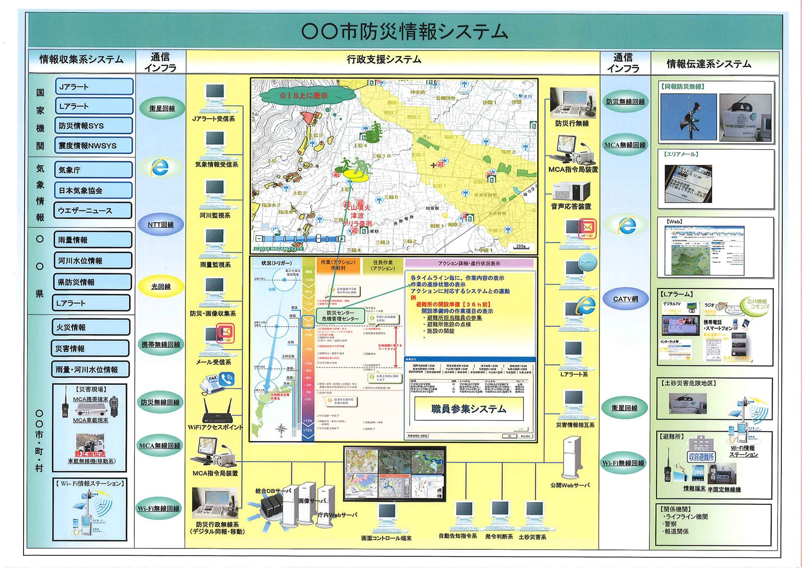昨今、災害時に活用できる通信設備は非常に多様化し、市町村の整備計画も複雑化し、様々なシステムの活用検討が必要です。 住民等への防災情報伝達能力、情報収集能力の更なる向上を図るためには、異なる通信システムを複合的に運用し、一元的に管理できることが理想と考えます。